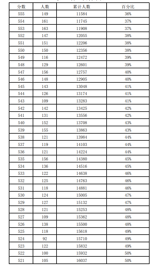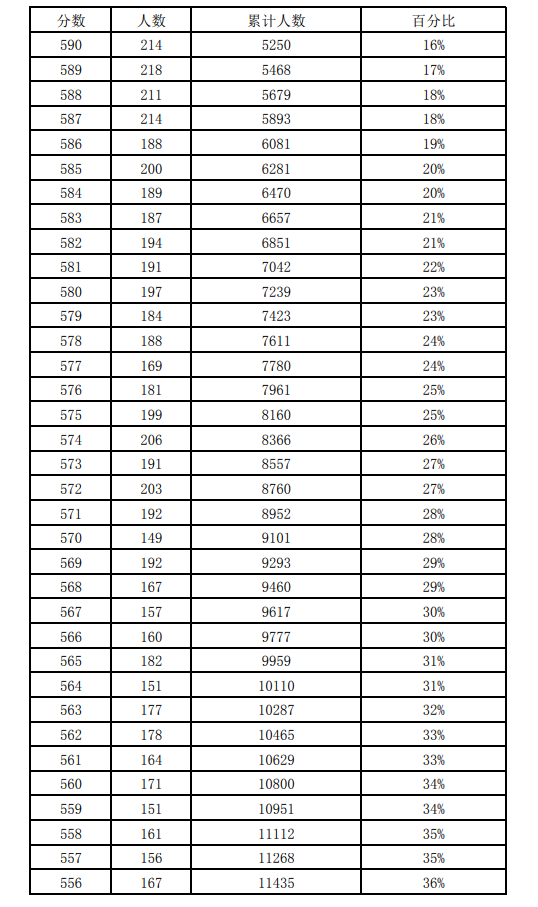 2022年中考17個縣(市區(qū))考生成績一分一檔統(tǒng)計表